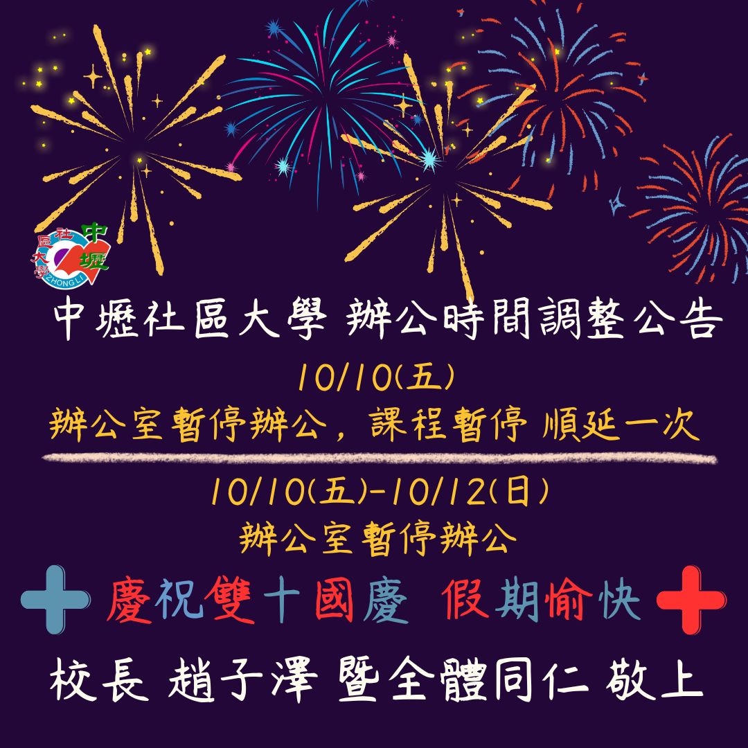 2025/10/9辦公室辦公時間調整公告(10/10-10/12)